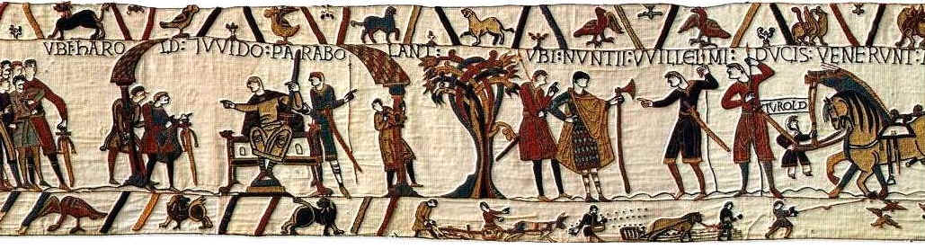 ![]() (1) Edward rex: (2) Ubi Harold dux: Anglorum: et sui milites: equitant: ad Bos[ham] |